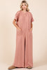 The Button Detail Short Sleeve Wide Leg Jumpsuit is a fashionable and versatile one-piece outfit that features button detailing, short sleeves, and wide-leg pants. This jumpsuit offers a chic and trendy look that can easily transition from day to night. The button details add a touch of sophistication, while the wide-leg silhouette provides comfort and style. Pair this jumpsuit with sneakers for a casual daytime look or dress it up with heels for a more polished outfit.