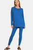 The brushed microfiber top and leggings lounge set is the epitome of comfort and style for your lounging needs. Crafted from soft and cozy microfiber fabric, this set offers a luxurious feel against the skin. The top provides a relaxed fit, while the leggings offer a stretchy and form-fitting silhouette for ultimate comfort. This lounge set is perfect for cozy nights in or casual outings, providing a versatile and chic look. Whether you're relaxing at home or running errands, this set ensures that you stay comfortable and fashionable. Pair with slippers for a cozy stay-at-home vibe or style with sneakers for a casual yet put-together ensemble. Experience the perfect combination of comfort and sophistication with the brushed microfiber top and leggings lounge set for effortless lounging in style.